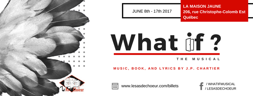 Une course contre la montre pour assurer une participation à une compétition musicale rendrait n'importe qui fou, mais jusqu'où ira David Jarnigan pour trouver en lui l'émotion nécessaire pour gagner? What if ? est à propos d'imagination, de création et d'entendre des propos jamais prononcés par un alter-ego. A-t-ille contrôle sur les personnages sur scène ou ont-ils le contrôle sur lui? [What if...] Et si... il avait besoin de choisir entre lui-même et ce qu’il est prêt à perdre pour finalement gagner? Une comédie musicale originale par J.P. Chartier.